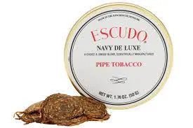Escudo Navy De Luxe is a popular brand of pipe tobacco known for its unique blend and high-quality ingredients. It is renowned among pipe enthusiasts for its rich flavor profile and smooth smoking experience. Here is a description of Escudo Navy De Luxe pipe tobacco: